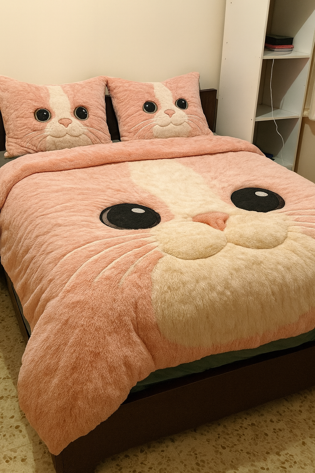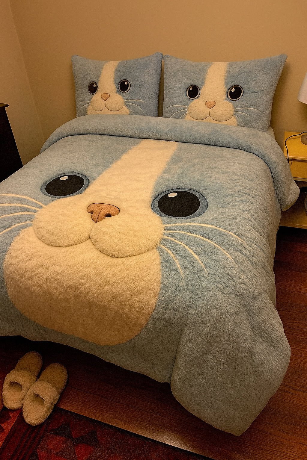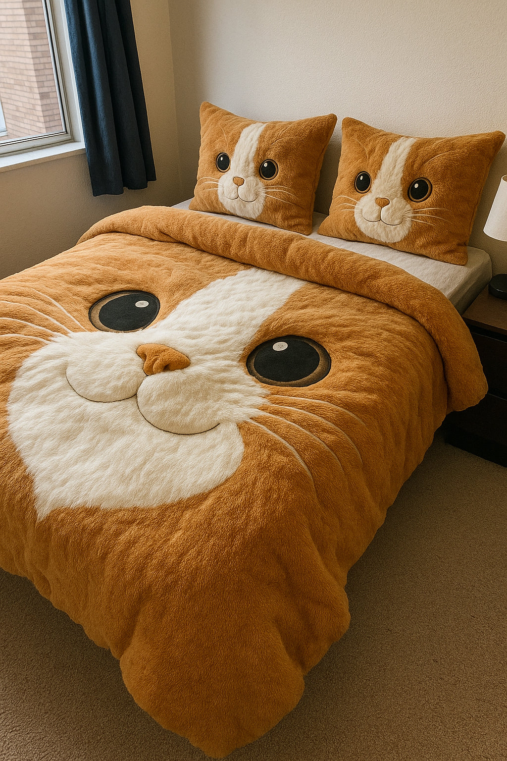 With its giant, super-cute cat face printed on the duvet cover and matching pillowcases, this bedding set instantly transforms your bedroom into a space of joy and good vibes.